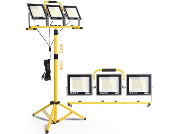 - (1) Gobright 31000 Lumen LED Work Lights with Stand - 3 Head Portable Work Lights with 16.5FT Cords - IP66 Waterproof Foldable Tripod Work Lamp for Outdoor Indoor Job Site Construction Garage Site Lighting (6500K)