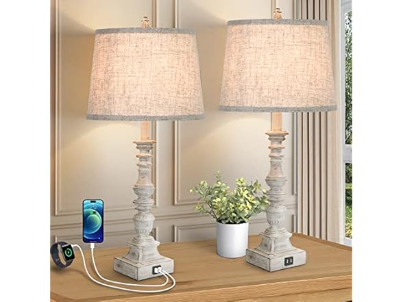 - PREMIUM UNIQUE DESIGN: This farmhouse table lamp featured a well-made beige fabric shades, hand-painted resin bodies, and a premium rotary switch that blends classic and contemporary styles. No doubt, this elegant set of 2 lamps will be a perfect choice to make your bedside table, office desk, side table, cafe, or dresser more exquisite