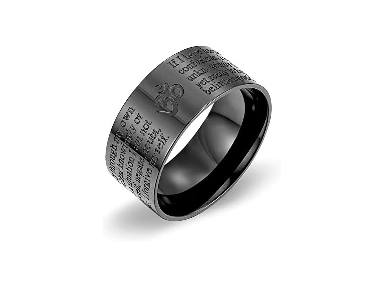- (1) Men's Cool Wedding Band 11MM Stainless Steel Bible Forgiveness Meditation Carved Motocycle Biker Hipster Rings Black Size 9