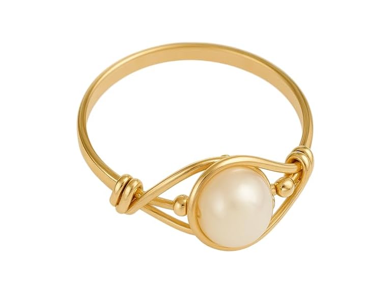 - (1) Handmade Gold Filled Wire Wrapped Ring for Women with 6mm Fresh Water Pearl, Size 10