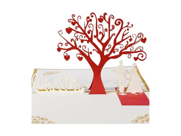 - Elegant 3D Pop-Up: Inside the card, a stunning 3D scene unfolds, showcasing a bride and groom walking hand-in-hand along a red carpet, with the iconic "MR&MRS" letters gracefully displayed beside them.