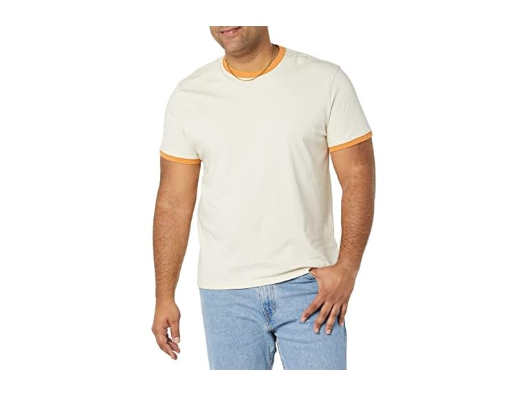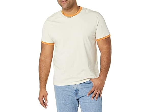 - RINGER TEE: This ringer tee is perfect for warm weather with an athletic, vintage feel. Wear it with your favorite shorts or jeans.