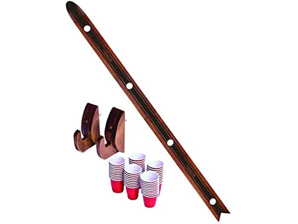 - (1) GoPong Das Shotten Ski - Rustic Wood 4 Person Drinking Ski with 50 Plastic Shot Glasses