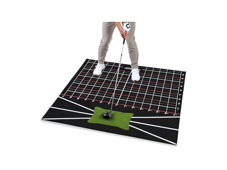 - (1) GoSports 5 x 5 Golf Hitting Mat - Fix Slices & Hooks - Stance Mat for Indoor & Outdoor Practice