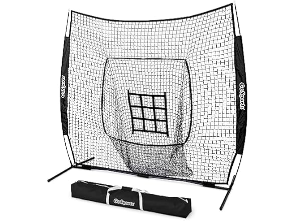 - (1) GoSports 7 ft x 7 ft Baseball & Softball Practice Hitting & Pitching Net with Bow Type Frame, Carry Bag and Strike Zone, Great for All Skill Levels