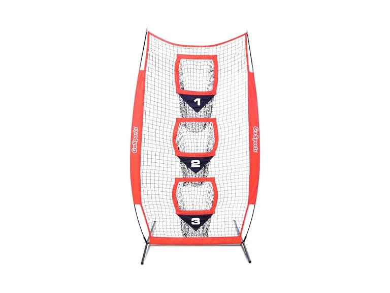 - STURDY CONSTRUCTION: Frame is made from reinforced steel with high density polyester netting; Includes 2 stakes for extra stability during practice on grass or dirt