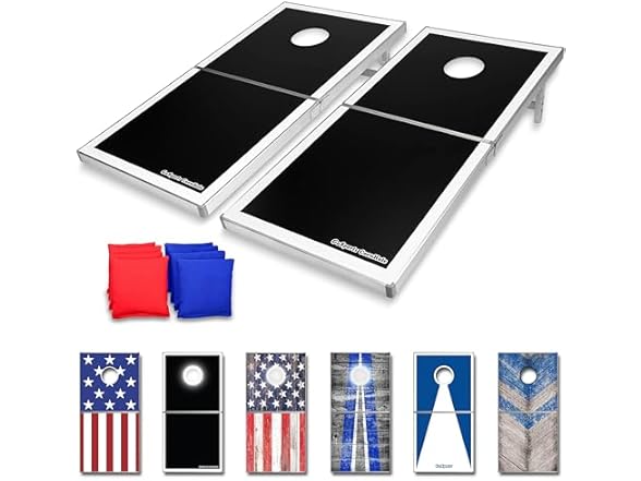 - REGULATION SIZE: Full cornhole set includes 2 regulation size (4 feet x 2 feet) cornhole boards for authentic gameplay, 8 all-weather bean bags, and rules