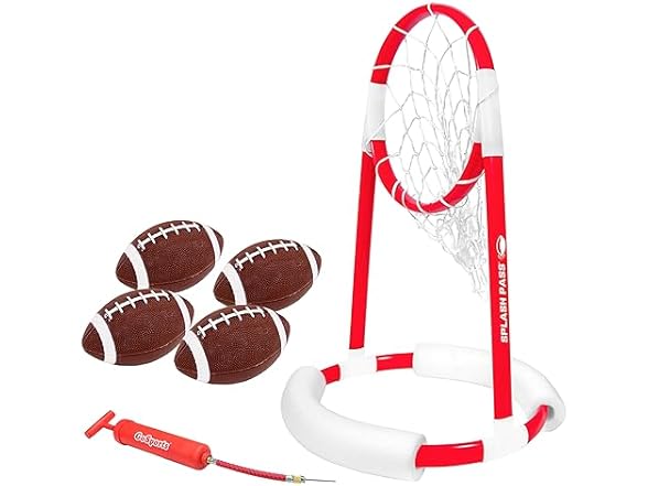 - MAKE A SPLASH: Beat the heat this summer and test your football toss skills with the ultimate swimming pool party game, GoSports Football Splash Pass; Includes 1 Splash Pass target, 4 water footballs, and ball pump