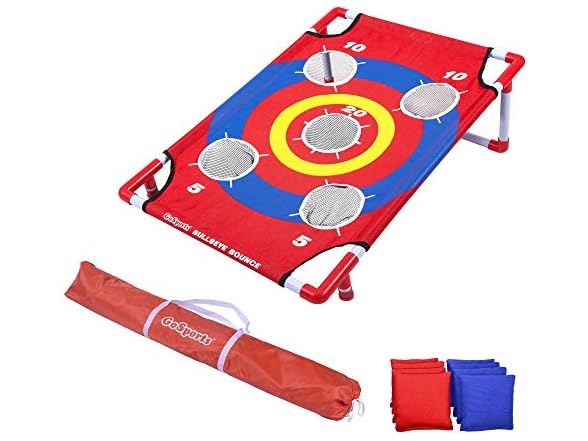 - COMPLETE BULLSEYE BOUNCE GAME SET: The whole set weighs less than 6 pounds and includes 1 foldable bullseye bounce target, 8 bean bags, portable carrying case and rules with multiple fun ways to play