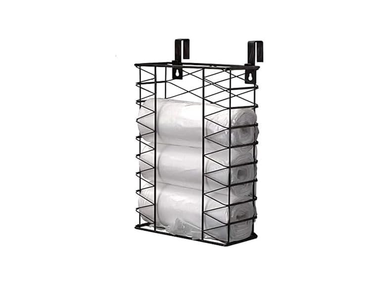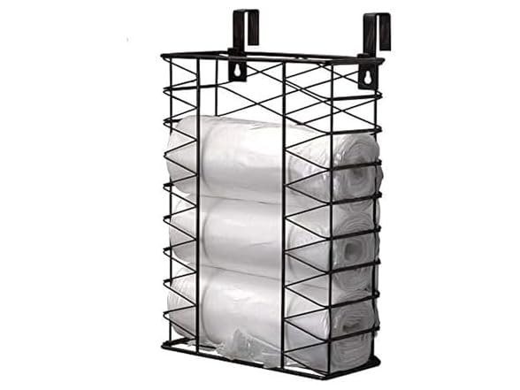 - EASY ACCESS: basket features a large opening on top to insert rolls of bags, and a dispenser opening on front for quick removal of bags