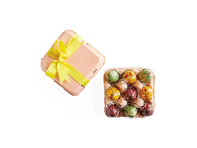 9 delicious enrobed Easter eggs packaged in a real egg crate!