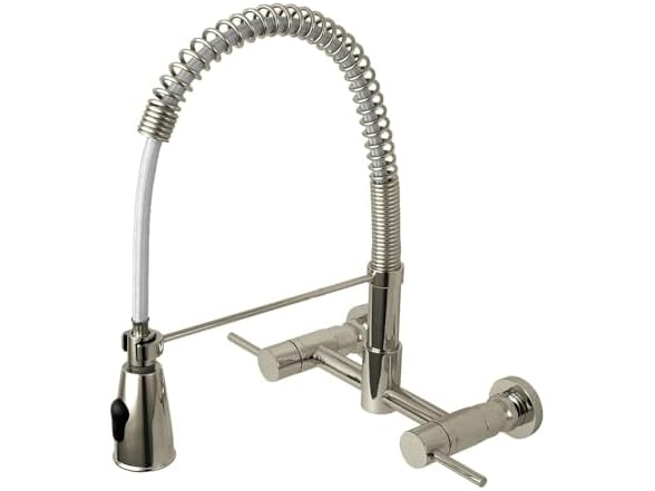 In the Box: (1) Gourmetier GS8288DL Concord 2-Handle Wall Mount Pull-Down Kitchen Faucet, Brushed Nickel