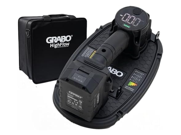 - GRABO High-Flow Cordless Vacuum Lifter | 242 lbs Capacity | LED Pressure Display | Ergonomic Pistol Grip | SMART CUT Foam Seal | Lifts Porous Materials, Dry Cast Pavers | Pro Construction Tool