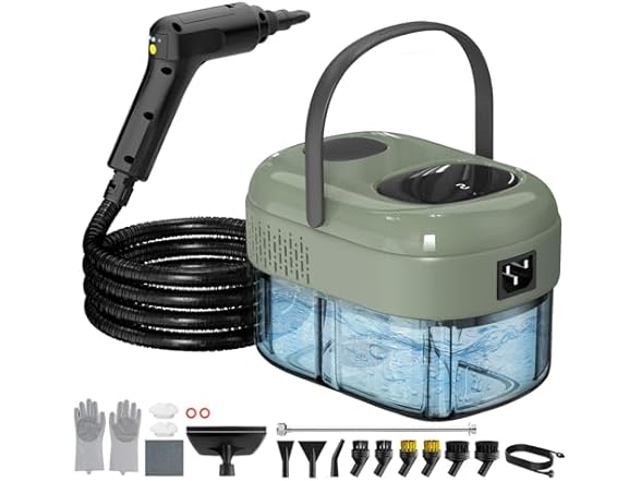 - 【2500W Pressurized Steam Cleaner】 Our handheld steam cleaner is powered by a 2500W motor producing 3BAR pressurized steam at 221°F/105°C in 15 seconds. Delivers a instant, high-temperature steam that penetrates deep into surfaces. Effortlessly dissolves tough kitchen grease, bathroom grime, and upholstery stains without chemicals. Save time and money with professional-grade deep cleaning results at home