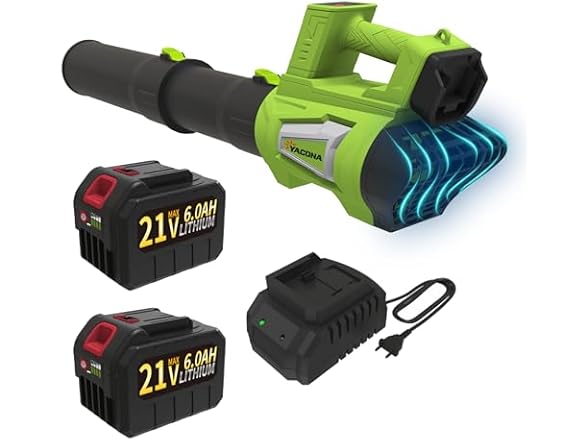- 【Long-Lasting 6.0Ah Battery with LED Power Display】This leaf blower cordless with battery and charger comes with a powerful 6.0Ah lithium battery that easily supports full-yard cleaning on a single charge. The built-in LED display shows real-time battery status, allowing you to manage power efficiently and work smarter for longer. For best performance, please fully charge the battery before first use, and allow it to rest for 5–10 minutes after discharge before recharging.