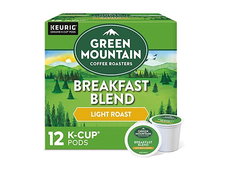 - (1) Green Mountain Coffee Roasters Breakfast Blend Single-Serve Keurig K-Cup Pods, Light Roast Coffee, 12 Count