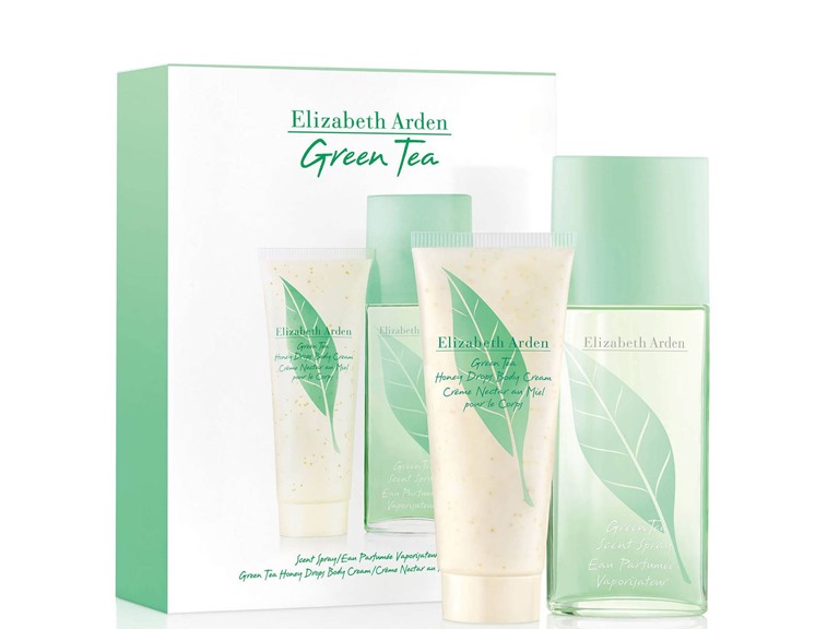 - (1) Green Tea/Elizabeth Arden Set (w) Green Tea Scent Spray Eau Parfumee Spray 3.3 Oz - Spain Green Tea Honey Drops Body Cream 3.3 Oz - United States in Gift Box