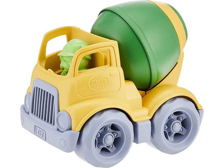 Scoop it! Mix it! Dump it! Just another earth-moving, earth-saving day at the job site for the Green Toys™ Construction Trucks, made in the USA from 100% recycled plastic that save energy and reduce greenhouse gas emission. Chunky, sturdy, and durable, the Mixer's revolving drum spins in both directions. Perfect in a sand box, toy box, or gift box, this pint-sized truck is just right for little hands, and can easily be tossed in a diaper bag for on-the-go fun. Great for individual play, or sharing and swapping with friends. This bundle comes with our Puppy Construction Crew Board Book!