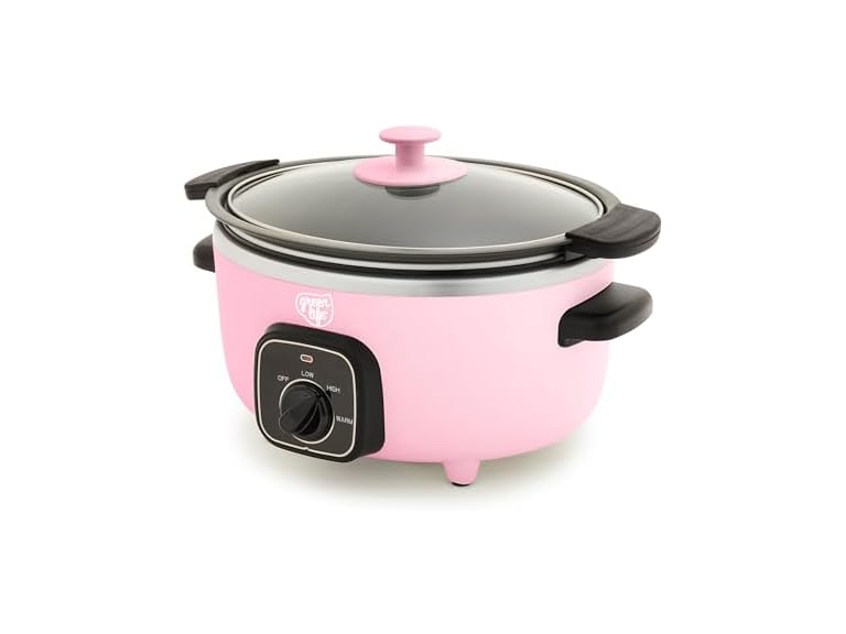 - (1) GreenLife 3.5QT Slow Cooker, PFAS-Free Non-Toxic Ceramic Nonstick Removable Interior Bowl, Programmable, Keep Warm, Stovetop & Oven Safe Pot, Dishwasher Safe Crock & Glass Lid, Pink