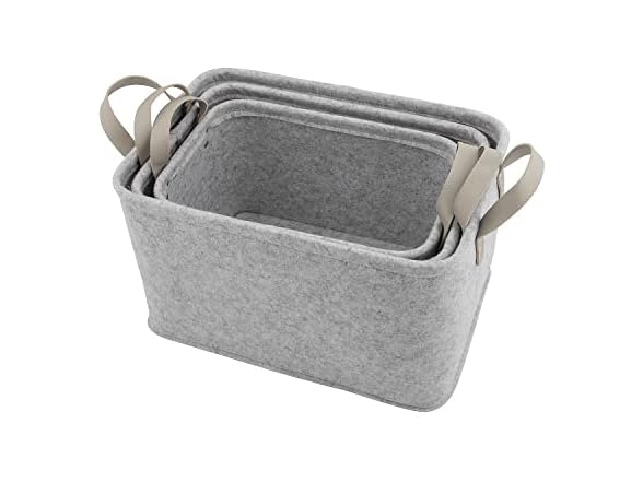 - Grey Felt Storage Basket Set, 3 Pieces