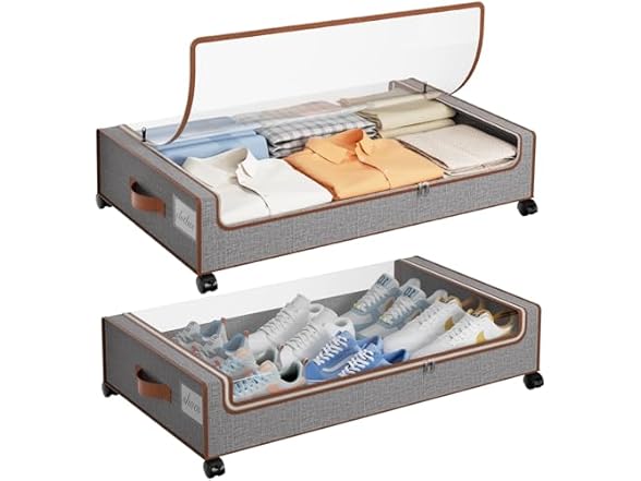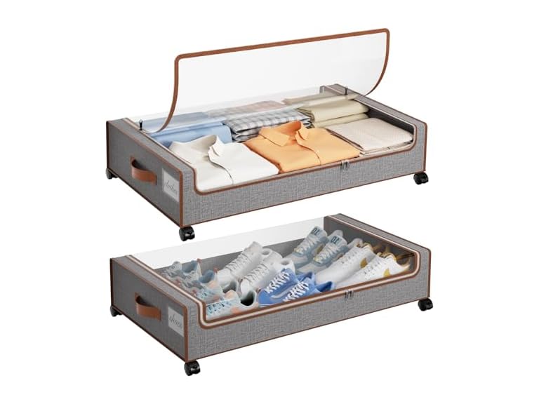- Multipurpose: Maximize storage with this under bed organizer, perfect for stashing out-of-season clothes, blankets, shoes, and more. Its slim design slides neatly under beds or sofas, fits in closets, or beside shoe cabinets. Ideal for apartments, dorms, and any home—keep essentials within reach yet out of sight