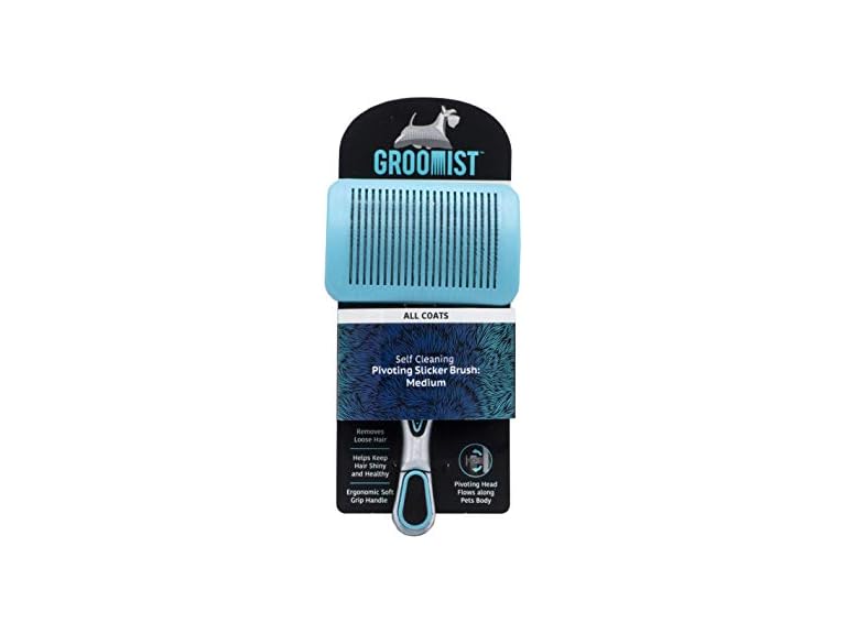 - (1) Ergonomic Pivoting Slicker Brush for Medium Dogs - Self Cleaning and Shedding Control for Loose Hair and Mats