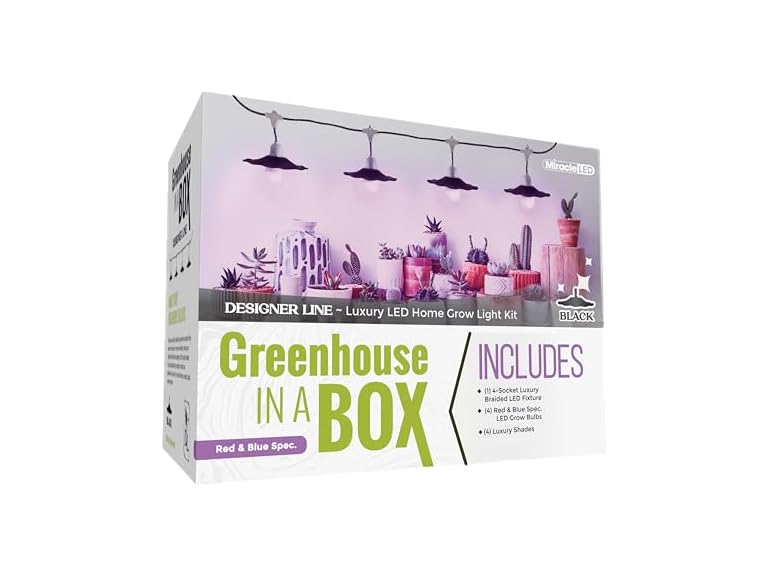 - Miracle LED Grow with Elegance 4-Socket & Black Shade (4KK Purple Spectrum Edition)