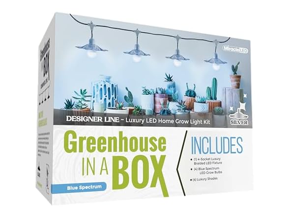 - Miracle LED Grow with Elegance 4-Socket & Sliver Shade (4KK Blue Spectrum Edition)
