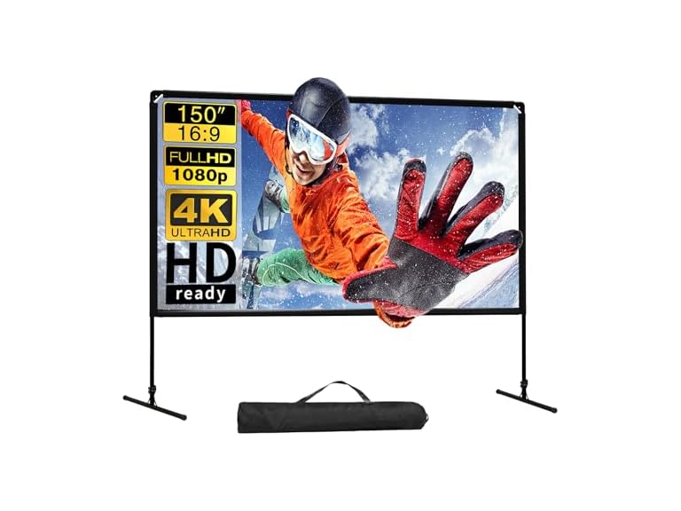 - ♥Easy to Assemble and Carry: The outdoor projector screen is easy to assemble and disassemble, projector screen with stand can be quickly stored in the carrying bag after use and takes up less space. The carrying bag is equipped with a handle for easy transportation.It is the perfect gift choice for birthdays, holidays and anniversaries.