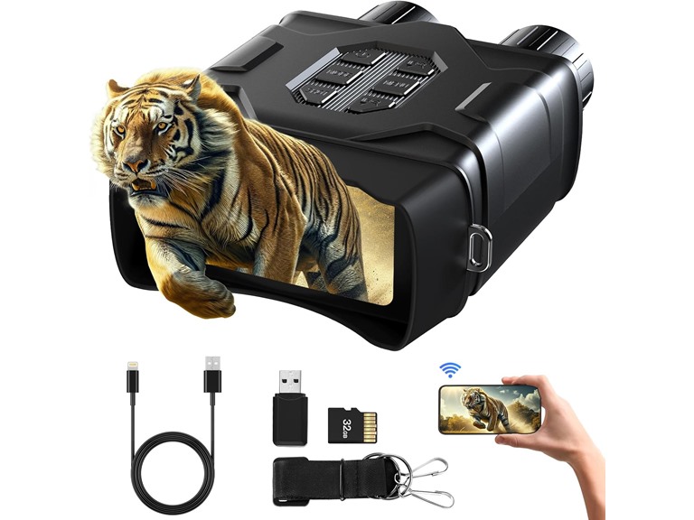 - 【Remote Viewing & Control via App】 Use the WiFi-enabled app to view and control the night vision binoculars remotely, perfect for discreet surveillance or wildlife monitoring without disturbance. The tripod mount ensures stability. For optimal app performance, always update to the latest version.