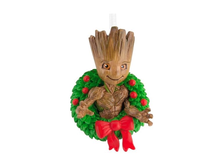 - Delight a Marvel fan with this cute Groot in Holiday Wreath Hallmark Christmas ornament. Design features the flora colossus from "Guardians of the Galaxy" in a Christmas wreath.