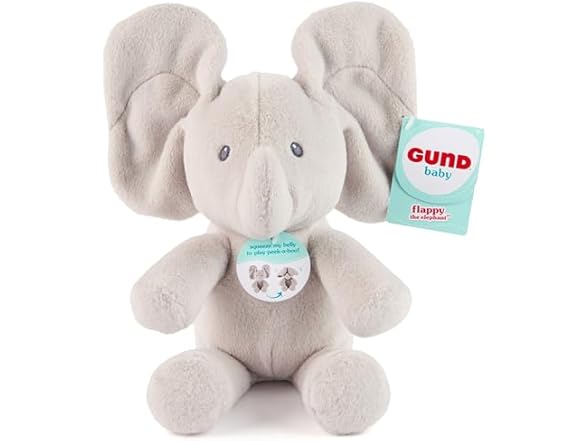 - GUND Baby Peek-a-Boo Flappy Elephant Plush, Elephant Stuffed Animal, Baby Toy for Ages 0 and Up, Gray, 7" (Batteries Not Required)