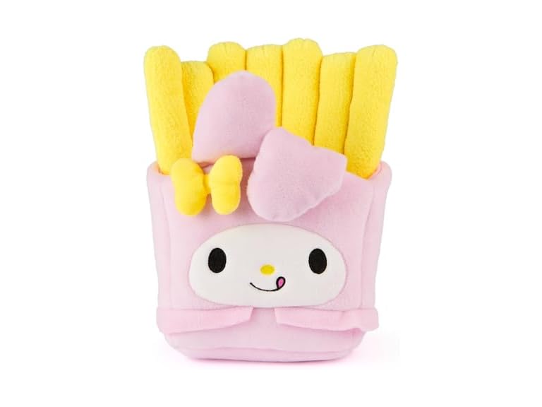 - MY MELODY FRENCH FRIES PLUSH: This soft 8” plush features My Melody as a delicious order of French fries She wears a baby-pink carton and skirt, topped by soft 6” bright yellow plush fries and a white flower detail beside her ears