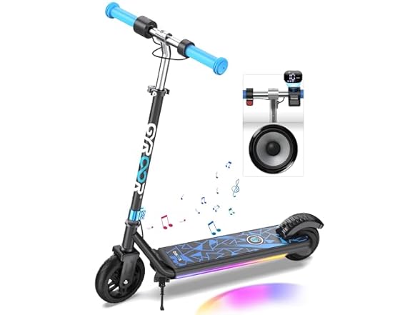 - Enjoy Music: Designed for kids ages 6-14, this electric scooter is equipped with flashy lights on the panel. It also features a built-in Bluetooth speaker on the bottom of the panel, allowing you to connect your phone and play music. Enjoy your rides on this top-rated electric scooter for kids while immersing yourself in your favorite tunes.