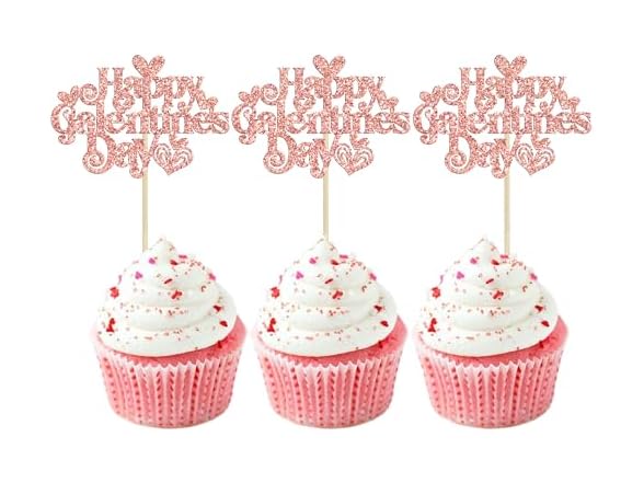 - (1) Gyufise 24Pcs Happy Galentine's Day Cupcake Toppers Glitter Sweet Love Heart Happy Valentine's Day Cupcake Picks for Happy Valentine's Day Theme Birthday Party Cake Decorations Supplies Rose Gold
