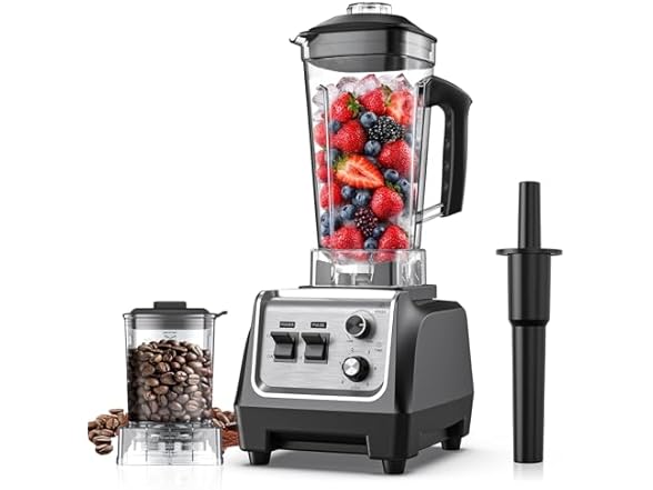 - 2 in 1 Blender & Grinder Combo:This countertop blenders for kitchen includes two containers: a 70 OZ pitcher for tasks like smoothies, protein shakes, nut butters, and fresh salsas and a 20 OZ dry grinding cup for items such as spices, coffee beans, nuts and grains. It aims to support a variety of wet and dry blending needs in one appliance