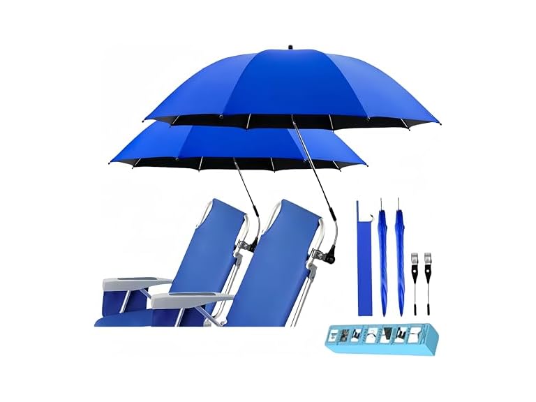 - 42" Patio Umbrella Umbrellas for Rain - Beach Essentials Boat Accessories Beach Umbrella Golf Umbrella with 360° Adjustable Universal Clamp, For Beach Chairs for Adults, Camping, Lounge Wagon(2 pcs)