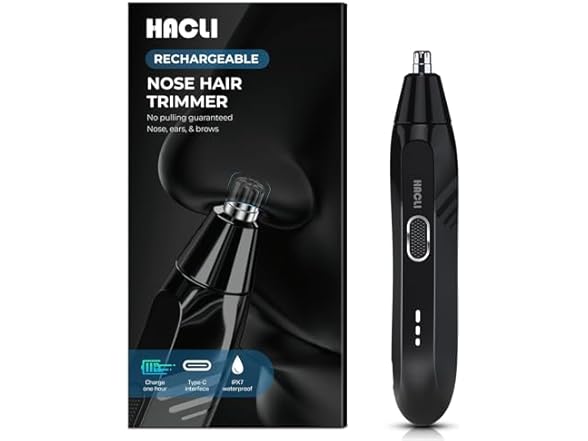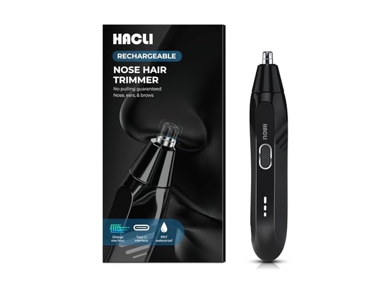 - HACLI Nose Hair Trimmer for Men Women - Electric Nose Hair Clipper with Powerful 8000RPM Motor, IPX7 Waterproof Wet/Dry Use, Travel Lock, Portable Design USB Rechargeable
