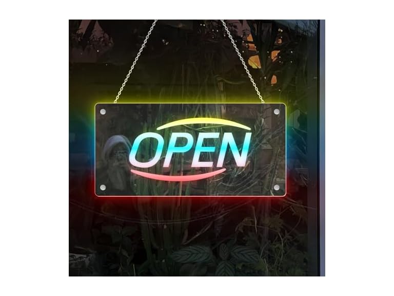 - Safe material: The open sign led is made of high-quality mirror acrylic and LED light strips, with low energy consumption, no flash, and safer and more durable.Safe and bright open signs are suitable for any storefront, window, glass door, retail store, restaurant, bar, hotel, theater, salon, coffee and so on.
