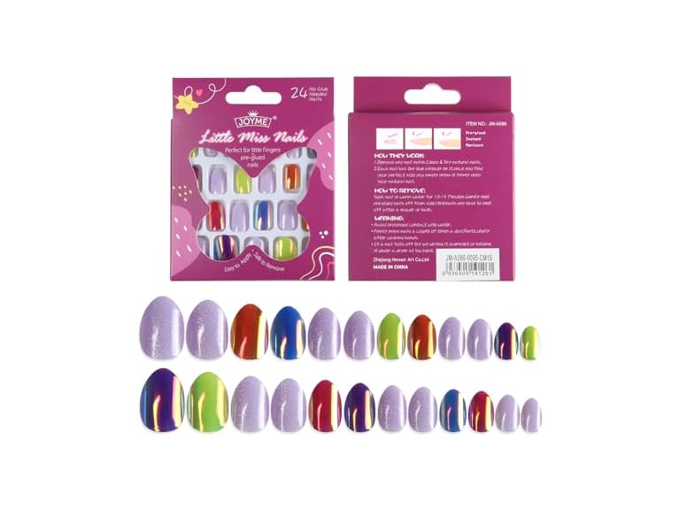 - (1) HAIIDOAK Press On Nails for Kids, 24 Pcs Pre-Glued Full Cover Short Artificial Nail Tips for Girls, Easy to Apply and Perfect for Nail Art (Amethyst)