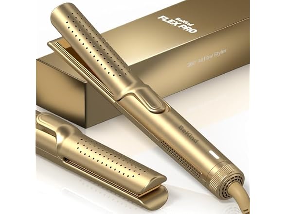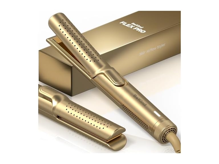- Hair Straightener and Curler 2 in 1 by BeKind Flex, 360° Hair Styler Flat Iron for All Styles, Floating Plates Design, Airflex Lower Temp for Better Styling, Gift for Girls and Women - Golden