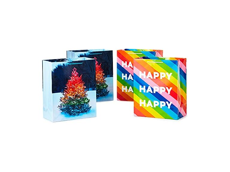 - Hallmark 13" Large Holiday Gift Bag Bundle (4 Bags: Rainbow Christmas Tree, Happy Rainbow Stripes) for Christmas, Hanukkah, Winter Solstice, Birthdays, Weddings (0005XGB1424)