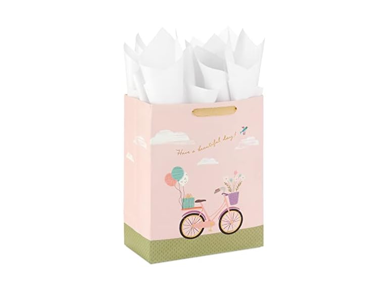 - (1) Hallmark 13" Large Mother's Day Gift Bag with Tissue Paper (Have A Beautiful Day Bicycle and Balloons) for Birthdays, Bridal Showers and More