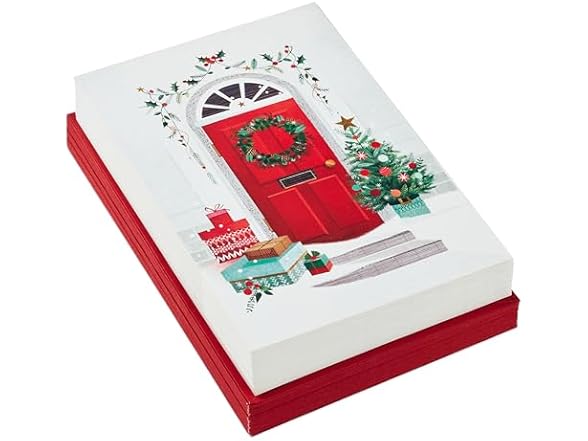 - (1) Hallmark Boxed Christmas Cards, Delivering Joy (40 Cards and 40 Envelopes) Red Front Door