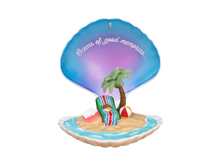 - Remember lots of fun in the sun when you hang this Oceans of Good Memories Hallmark Keepsake Christmas ornament. Seashell design features a palm tree, beach ball, and cooler on a sandy beach.