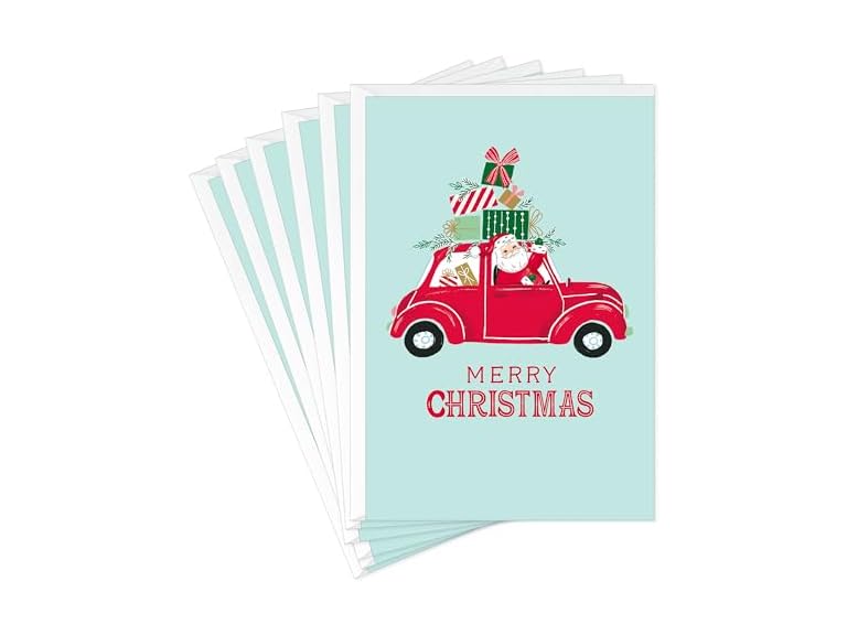 - (1) Hallmark Christmas Cards (6 Cards with Envelopes) Santa Driving Red Car