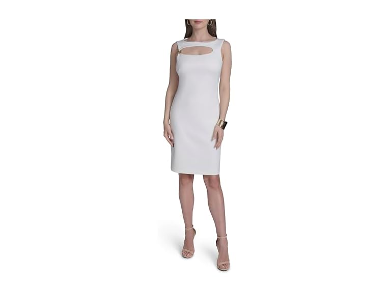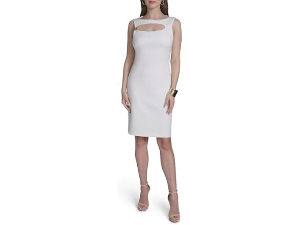 - Features: Sleeveless, open neckline, scuba, sheath, mini dress