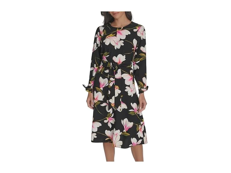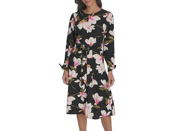 - Features: Long sleeve, belted, printed, fit & flare dress