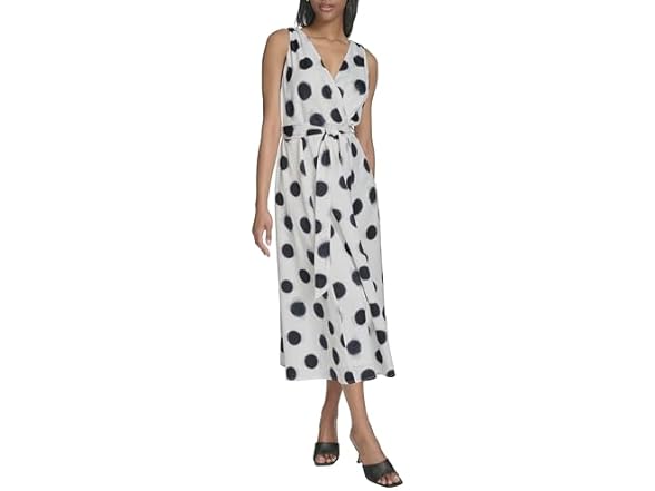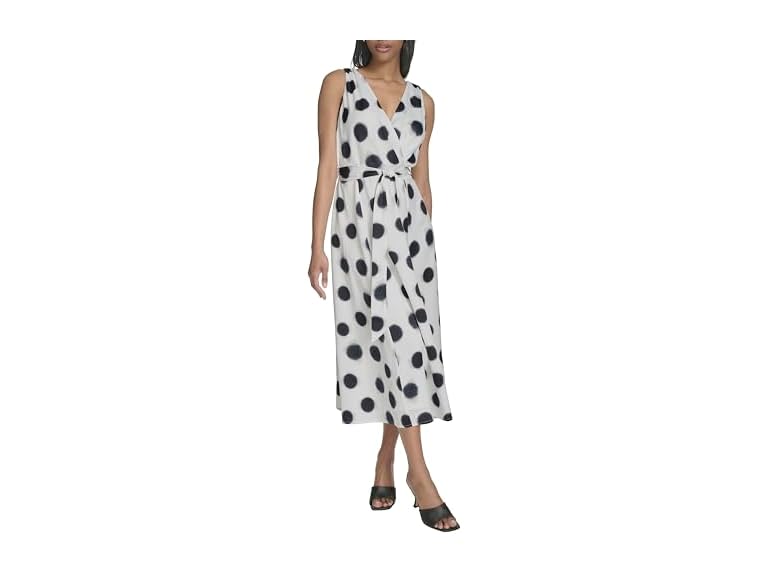 - (1) Halston Women's Sleeveless Surplice V-Neck Tie Waist Midi Dress
