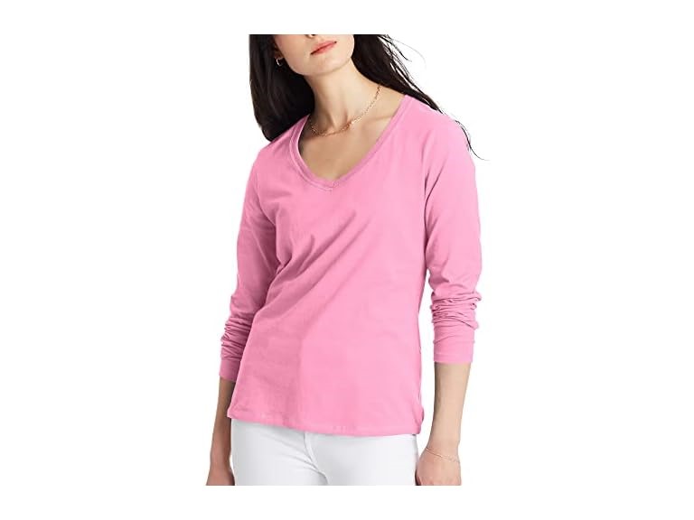 - (1) Hanes Womens Cotton V-Neck Long Sleeve Tee